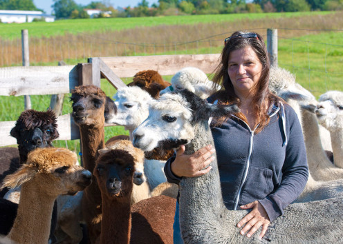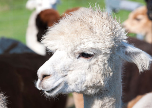 Heute hat sie 34 Tiere, bestehend aus 15 Stuten, 14 Hengsten und fünf Wallachen. „Alpakas sind normalerweise äußerst friedliebende Tiere, aber manchmal gibt’s auch bei ihnen ein Machtgerangel“, lächelt die Besitzerin. „Und genau wie Lamas spucken sie, wenn sie sich streiten, der Rivale wird also einfach „weggespuckt“, erklärt sie. Auf diese Weise erzieht eine Stute auch ihr Fohlen.