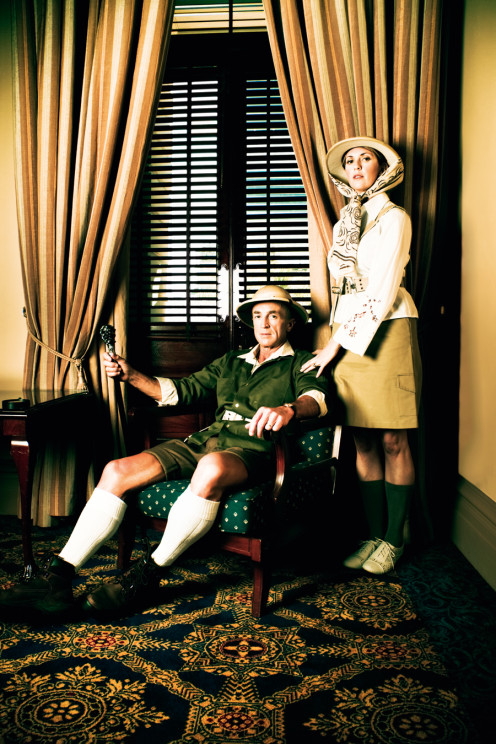 Vor dem sandbraunen Zelt baumelt die verchromte Petroleumlampe und wirft ihren schummrigen Schein auf zwei beinharte Kerle in staubigen Stiefeln; in der Ferne jaulen Hyänen. Beide Männer fläzen sich nonchalant auf Klappstühlen, bespannt mit sandfarbener Baumwolle. Während der eine seinen Hut lässig aus der Stirn in den Nacken schiebt, fingert der andere der beiden Abenteurer eine Zigarette aus der aufgesetzten Tasche seiner khakifarbenen Baumwolljacke und dreht mit der anderen Hand geschickt einen Schraubverschluss von einer Flasche mit brauner Flüssigkeit, aus der er sich einen großzügigen Schluck in einen Tumbler mit Eiswürfeln einschenkt, die er wer weiß woher hat. Um die Hüte der beiden schlingt sich je ein Streifen Leopardenfell als Hutband.